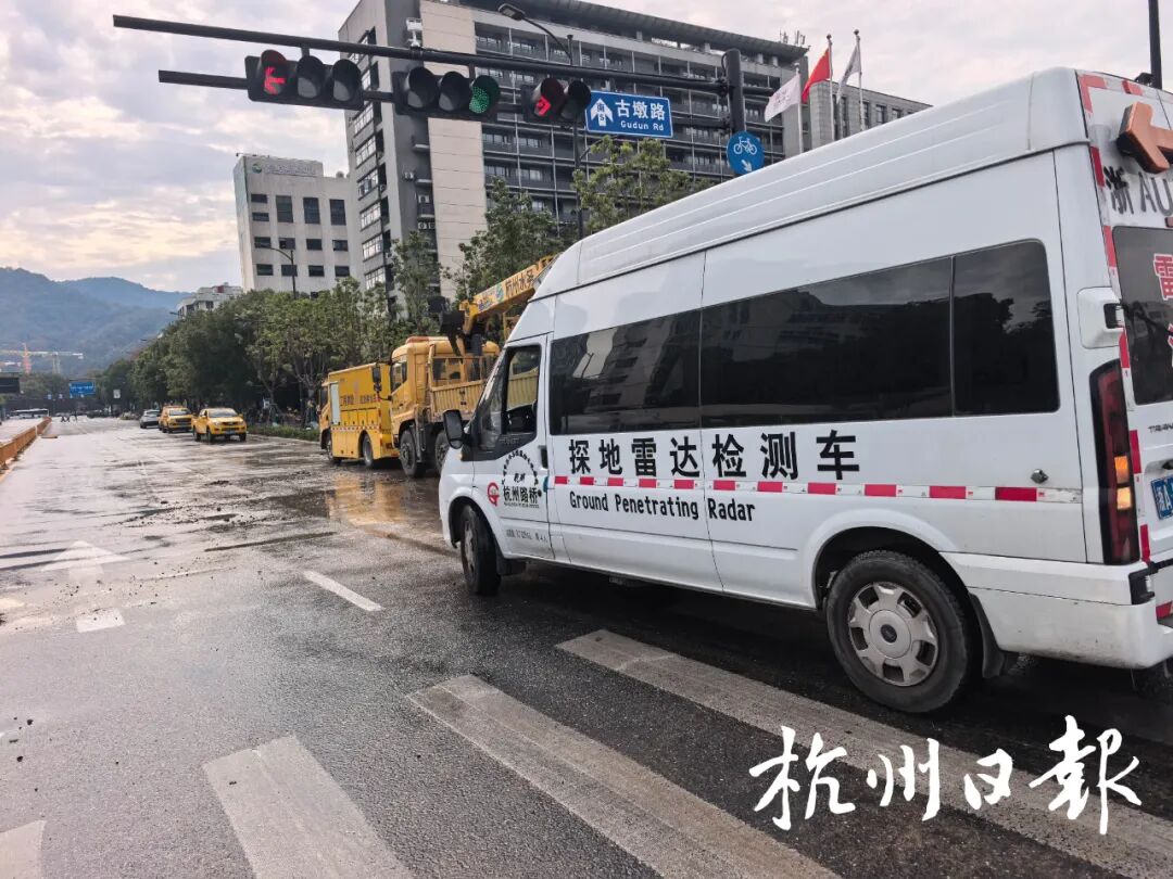 11时35分,一辆探地雷达检测车驶入现场作业。