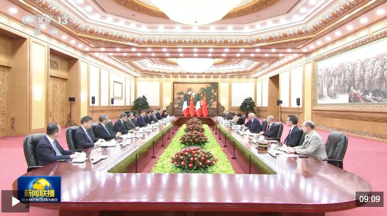 12月4日上午,国家主席习近平在北京人民大会堂同来华进行国事访问的法国总统马克龙举行会谈。