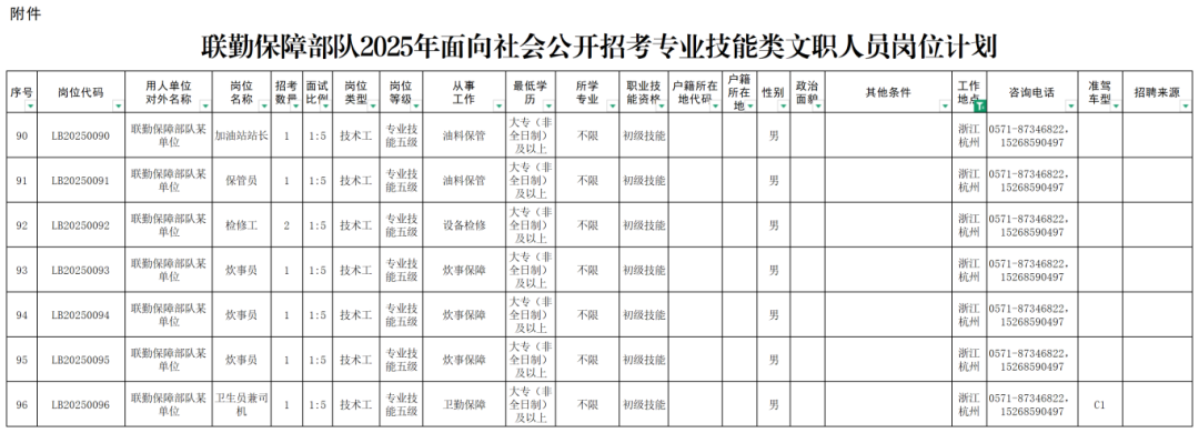 联勤保障部队2025年专业技能类文职人员公开招考工作最终解释权归联勤保障部队政治工作部文职人员处。