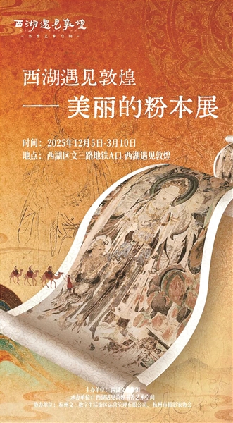12月5日,西湖遇见敦煌书香艺术空间成立一周年之际,一场“西湖遇见敦煌——美丽的粉本展”正式亮相。本次展览免费参观,空间选取20世纪40年代珍贵的敦煌壁画粉本精粹、藏经洞流失出去的海外藏本、西湖石窟旧影、敦煌石窟旧影等多项内容进行展出,水墨与青绿相映,绘画与雕塑共生,在江南淡雅与敦煌苍劲间点亮一盏人文心灯。同时邀请到中国美术学院教授何鸿亲临现场,围绕美丽的粉本,引领听众展开一场跨越时空的文化对话。