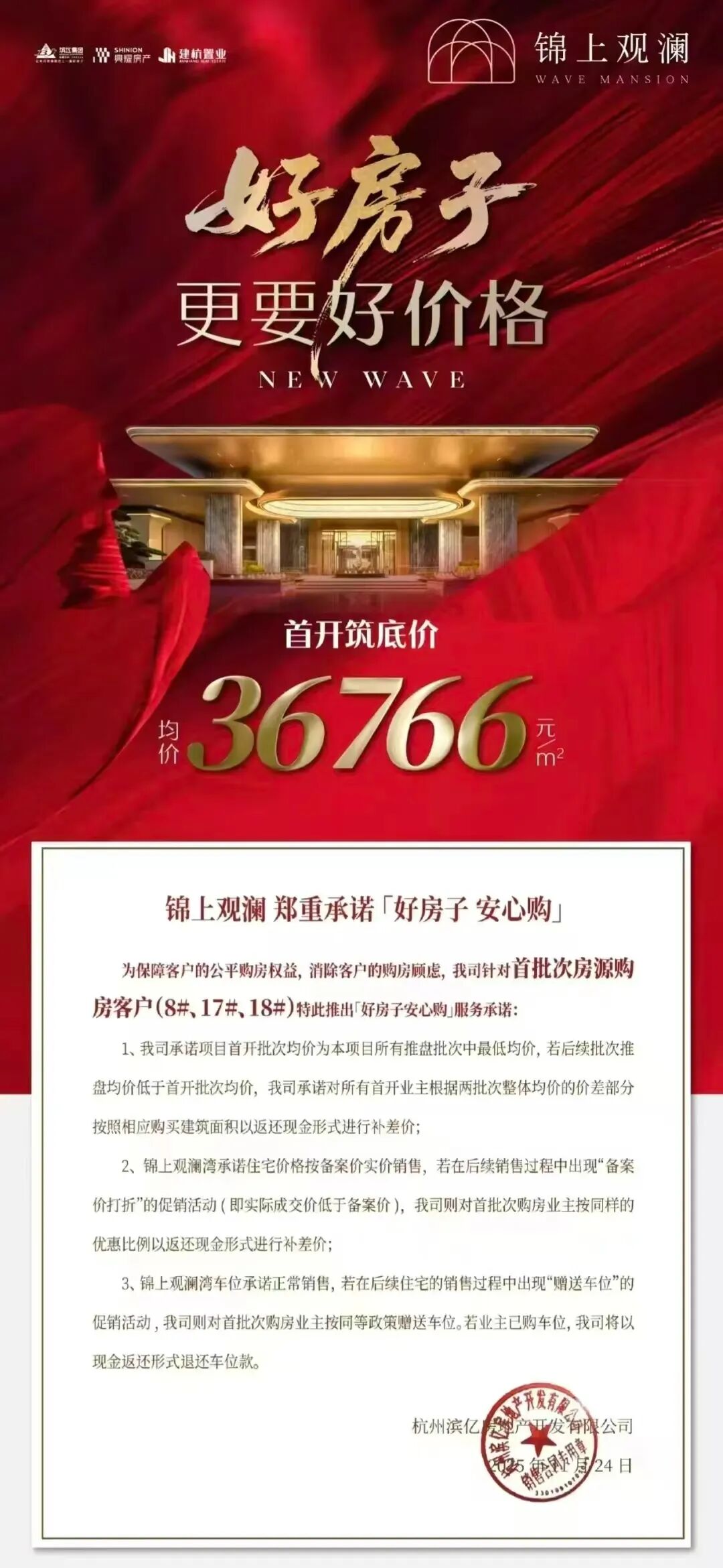 锦上观澜首开推出88套房源,精装均价只有36766元/㎡,这个价格,不仅远低于市北西在售的“4字头”、“5字头”项目,甚至比此前板块39500元/㎡的限价还要便宜,堪称目前杭州价格让步最大的新房。