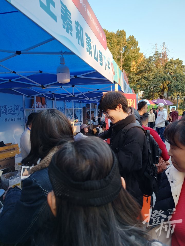 12月6日下午3点多,记者赶到拱墅区运河广场的老博会现场,人很多,非常热闹。王泰和的展位在拱宸桥东南侧,摊位前顾客络绎不绝。