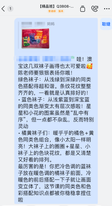 “刚开始,女儿画什么都是随性的。陈老师没有急着教技巧,而是蹲下来和她聊这节课的物品形象,用孩子气的语言引导她观察。等到每节课完成的作品提交后,陈老师会进行非常细致的点评。”王女士说,这点评堪称一篇“小作文”,找各种角度鼓励孩子,也会温和地提出可以改进的地方。