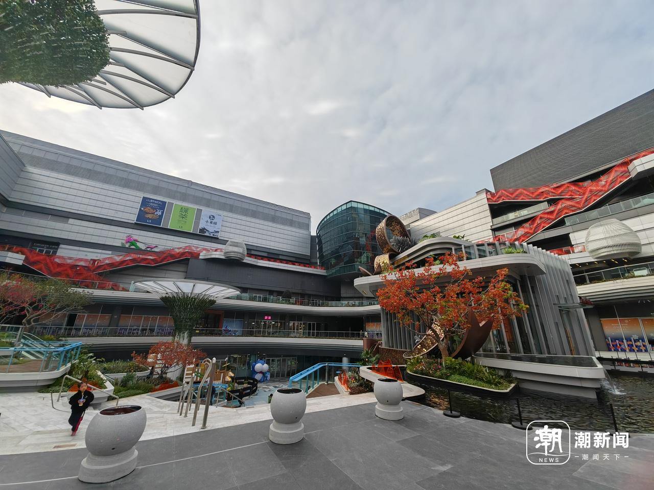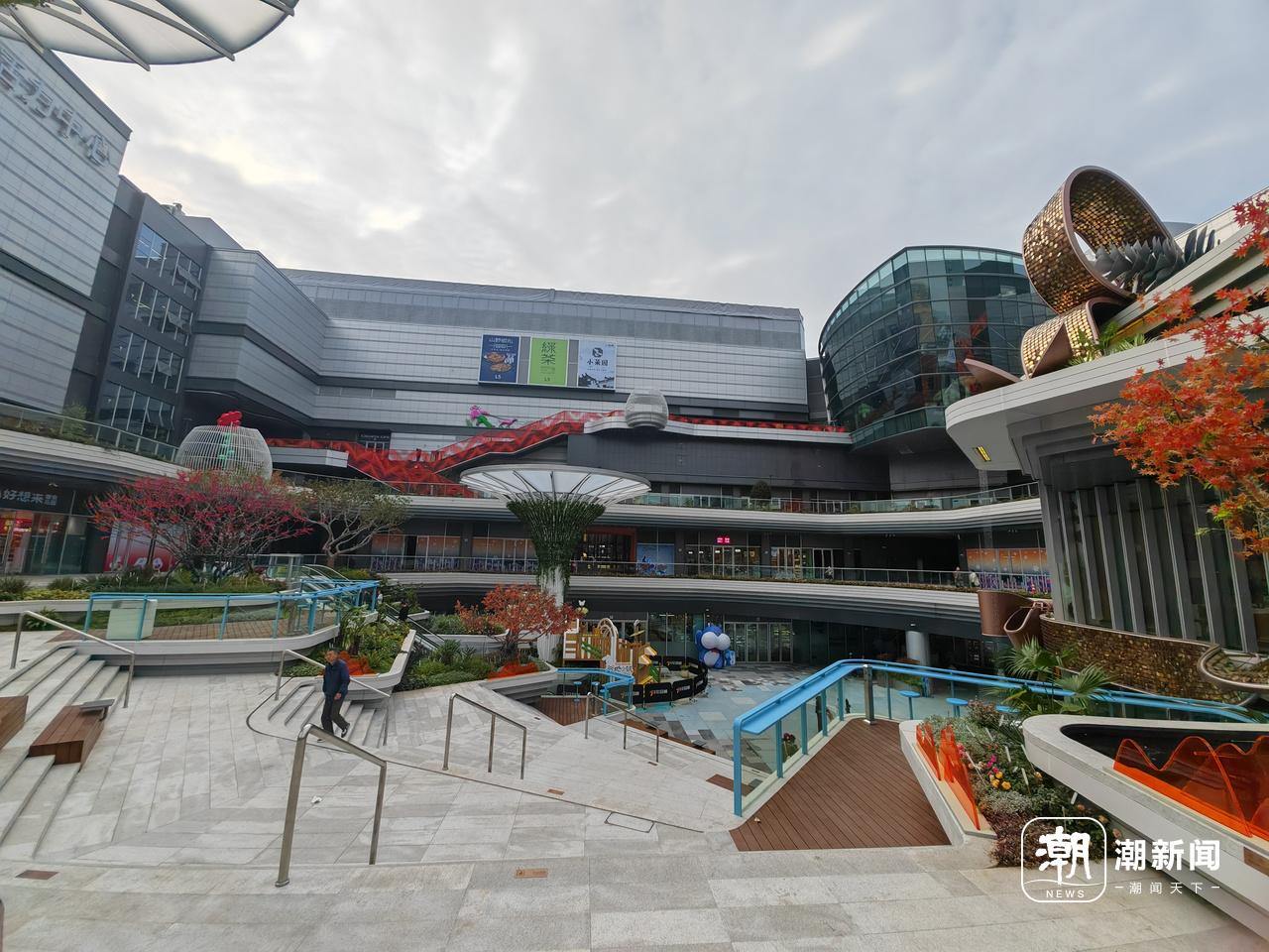 此外,商城外有一个巨大的下沉式广场,还有小孩玩的游乐设施,巨大的阶梯广场,相信以后一定有人在这里直播唱歌吧。因为设计精巧,还有不少年轻人拍照打卡。