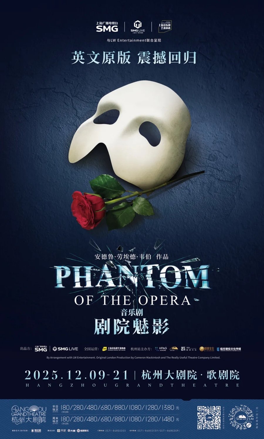 作为音乐剧史上当之无愧的璀璨明珠,《剧院魅影》早已成为无数观众心目中的“音乐剧白月光”。12月9日至21日,英文原版《剧院魅影》即将登陆杭州大剧院,为杭州剧迷开启16场演出,全浙江仅此一站。