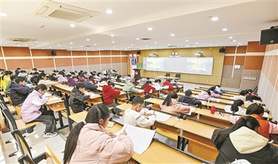 网络时代,不少参赛学生也偏好传统阅读模式。一大早就到考场的初三学生金宇宸说,自己时不时会翻翻汪曾祺的《人间有味》:“汪老笔下那些看似寻常的一粥一饭,经他妙笔点化,便有了温度和诗意。”他还专门准备了一个本子,摘抄好句、尝试仿写,“多积累一些,多揣摩一番,我把这些当成‘储备粮’,相信总会在某个时刻成为下笔时的底气。”