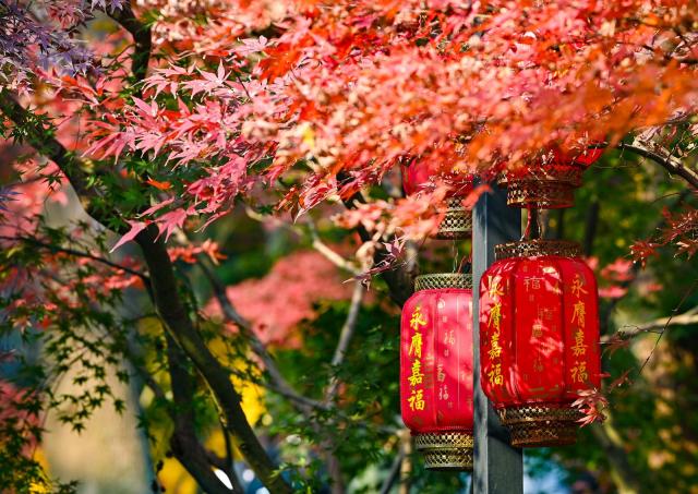 灵隐管理处工作人员介绍,今年景区着重对园林景观进行了系统提升,以枫树为“主角”,搭配杜鹃、茶花、罗汉松等传统植物,融入太湖石等造景元素,打造出多个主题花境与艺术小品。