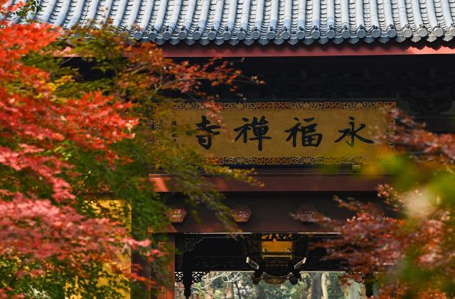 云上观景:关注“杭州灵隐”公众号,发送“云上枫景”即可体验