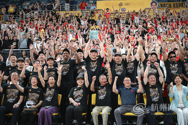 5月21日晚,浙江广厦男篮带着冠军鼎回到黄龙体育中心体育馆,在“我们是冠军”的呼声中,与杭州球迷共同举起冠军鼎。
