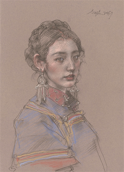 《彝女No.4》 52×37.5cm 纸上色粉