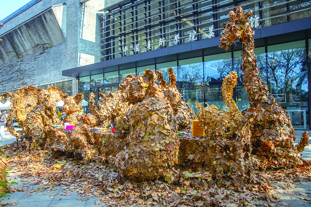 据了解,今年一共有二十余件落叶雕塑作品,除了在南山路美院门口外,还分布在上城区清波街道、萧山国际机场、邵逸夫医院等各个地点。