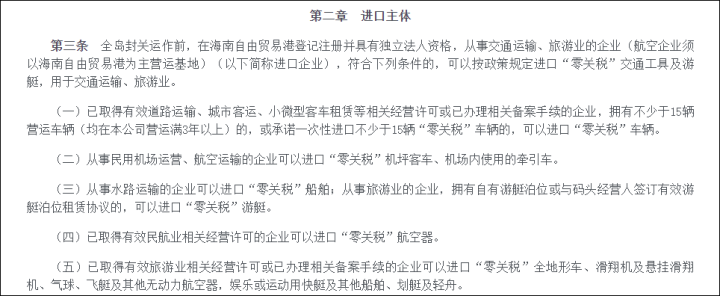《办法》规定,海南进口车免税政策仅针对在海南从事交通运输、旅游业的企业,车辆必须是用于营运,并且须安装车辆自主卫星定位终端,并与监管系统实行联网联控。同时,车辆必须确保始发地及目的地至少一端在海南自由贸易港内,且每年在中国内地停留时间累计不超过120天(按日计算,不计次数)。而且即便是企业购买,还得满足条件:公司要么有 15 辆以上营运满 3 年的车,要么一次性进口不少于 15 辆零关税车。