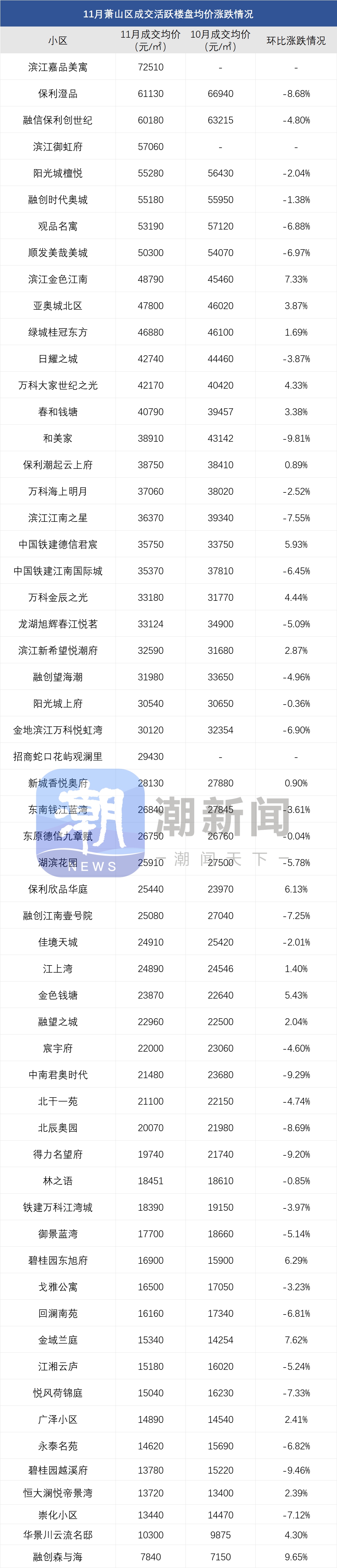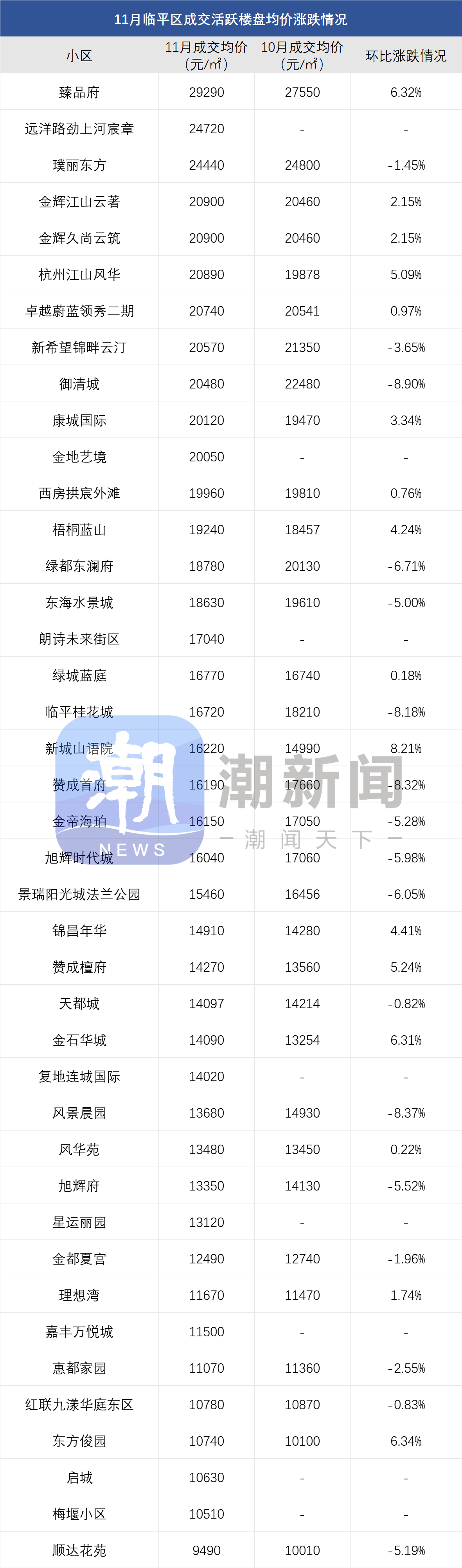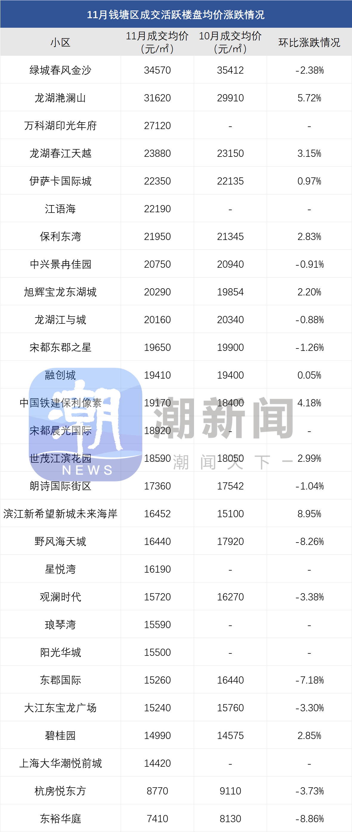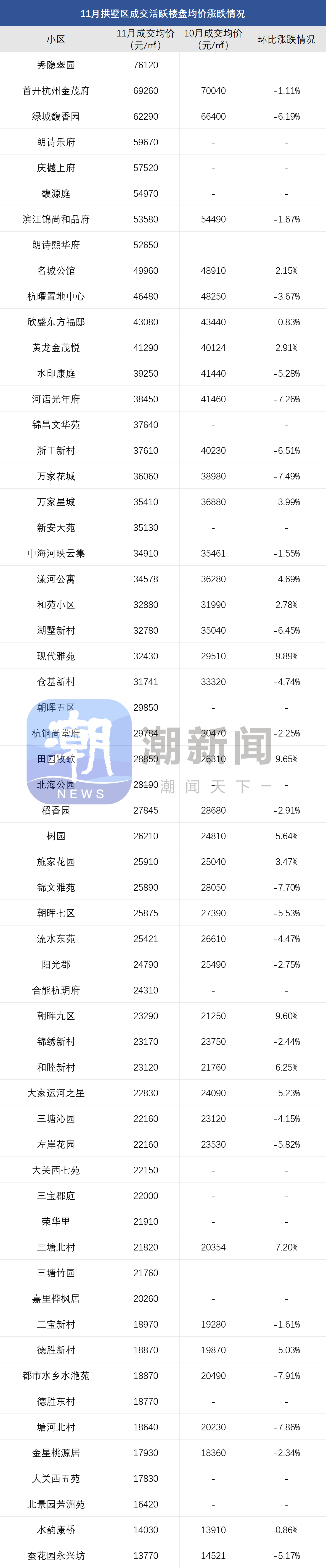 最新杭州二手房价涨跌榜:低总价房源撑起年底“翘尾”行情,最低7410元/㎡