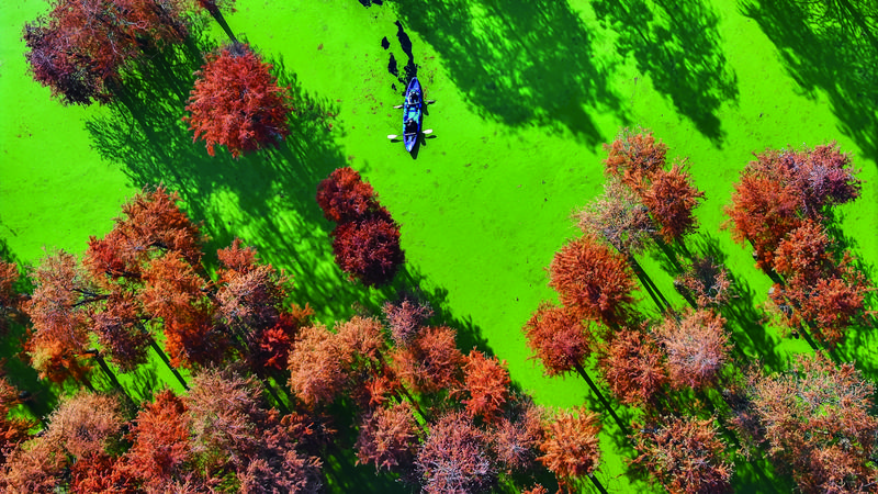“杭州有片焦糖色的抹茶森林!”最近,这句话在互联网上火了,这片森林指的是12月份的青山湖。眼下,杭州青山湖水上森林已进入红杉的最佳观赏期。上万棵杉树褪去青绿,染上金色、橙红、焦糖的渐变色彩,与铺满碧绿浮萍的湖面相互映衬,勾勒出一幅层林尽染的诗意画卷,吸引众多市民游客前来赏景拍照。这番美景预计可持续到12月底。