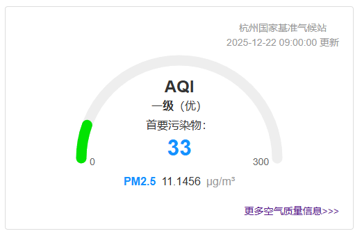 经过上一轮冷空气影响,杭州空气质量已明显好转,污染物浓度下降,天空不再像周六那样灰蒙蒙的。但需要注意的是,23日后期的冷空气可能会带来一些输入性污染,导致空气质量略有下降。好在前期污染物积累不多,预计不会像之前那么严重,但呼吸系统敏感人群外出时建议佩戴口罩。