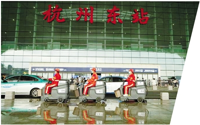 杭州东站总建筑面积达34万平方米,是华东最大的铁路枢纽站点之一,日均客流量超40万人次,单日最高客流达59.4万人次。自杭州深化全域“无废城市”建设以来,杭州东站秉持新发展理念,从“最温馨的国际枢纽驿站”迈向“无废标杆”,全力打造交通领域“无废城市细胞”示范样板,努力探索建设全国首个“无废交通枢纽”,为杭州建设生态文明之都注入硬核动能。