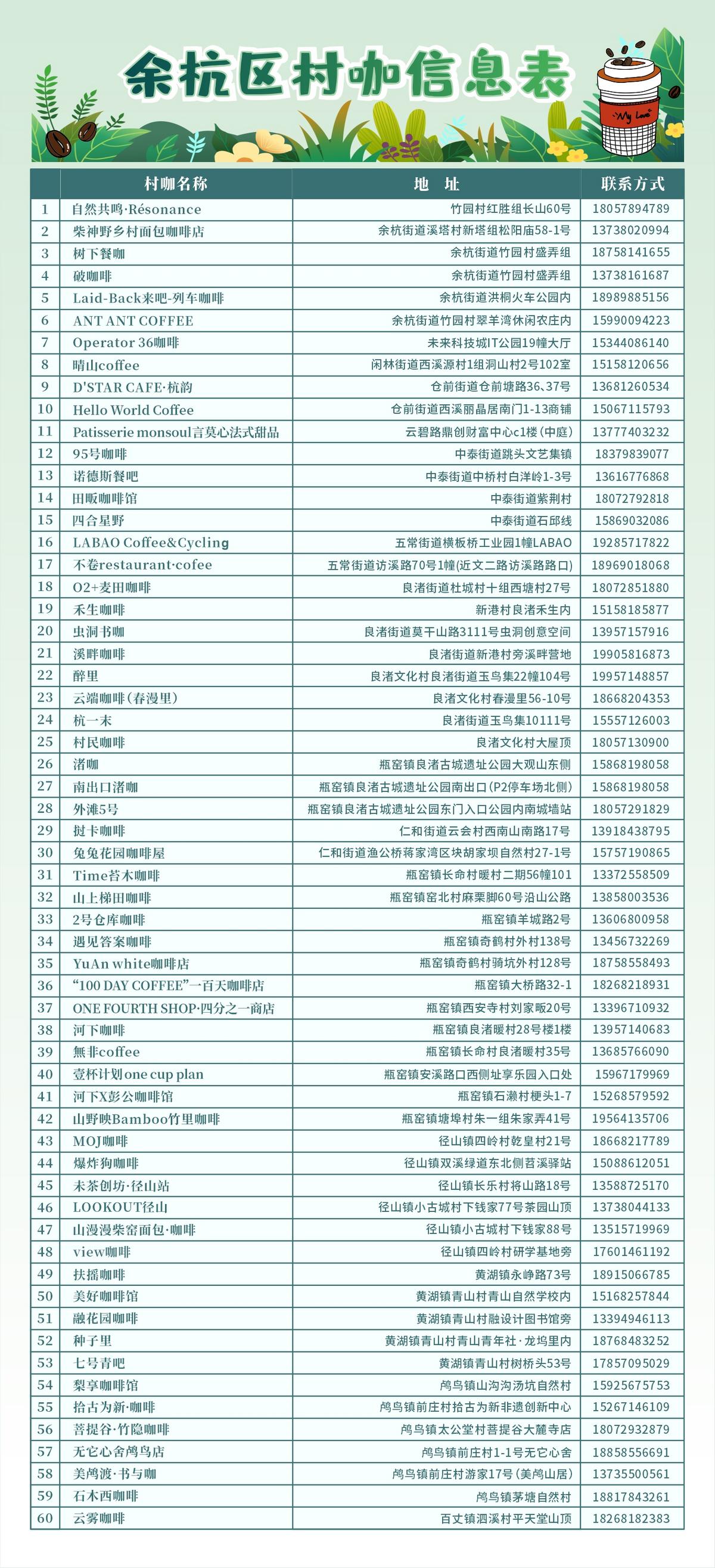 征集主题:围绕“跟着村咖趣游记”的主题,聚焦和余杭村咖相关的“外景、人物、事物”,要求主题鲜明,可以是风光、人物、活动等,展现余杭“啡”同寻常的村咖的烟火气和魅力。