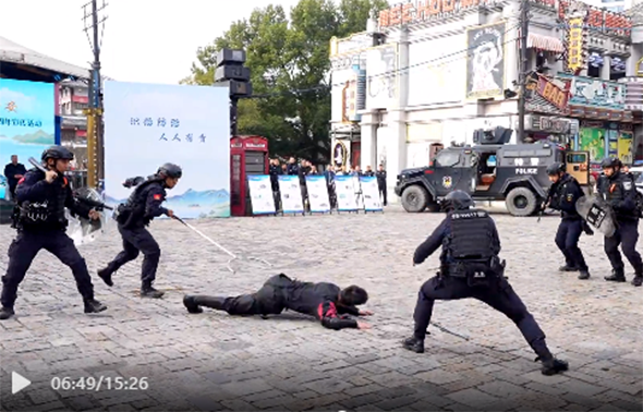 12月23日,浙江省“全民反恐 共创平安”反恐怖宣传教育活动在金华横店影视城正式启动,一场名为《反恐联盟》的沉浸式大型反恐演出拉开了《中华人民共和国反恐怖主义法》颁布10周年的宣传序幕。本次活动由浙江省公安厅反恐怖总队主办,金华市公安局协办,东阳市公安局承办,公安部和省司法厅相关部门领导莅临出席,各地反恐部门负责人参加活动。