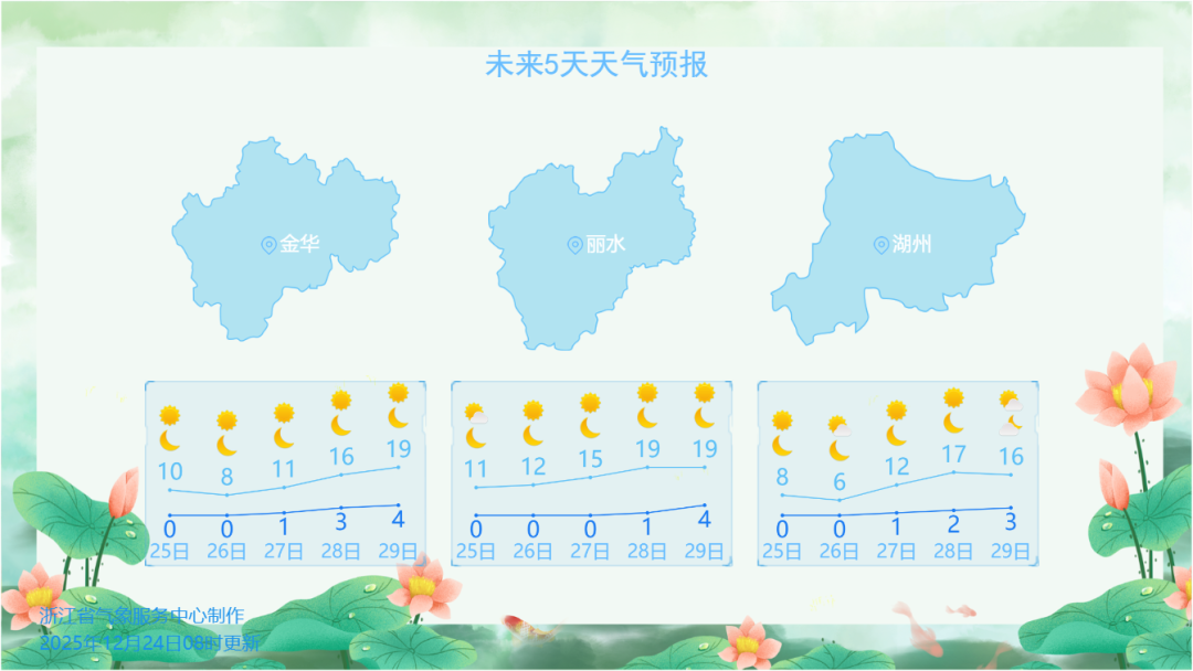 明起全国大部重返晴朗少雨的天气格局,预计我省明天中午起浙南地区雨止转多云,其它地区多云。