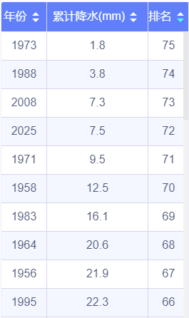 进入11月中旬以来,杭州持续晴多雨少天气,期间降水的日子屈指可数。到昨天为止,主城区累计降水量只有7.5毫米,在1951年有连续观测纪录以来历史第四少。