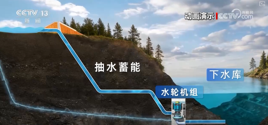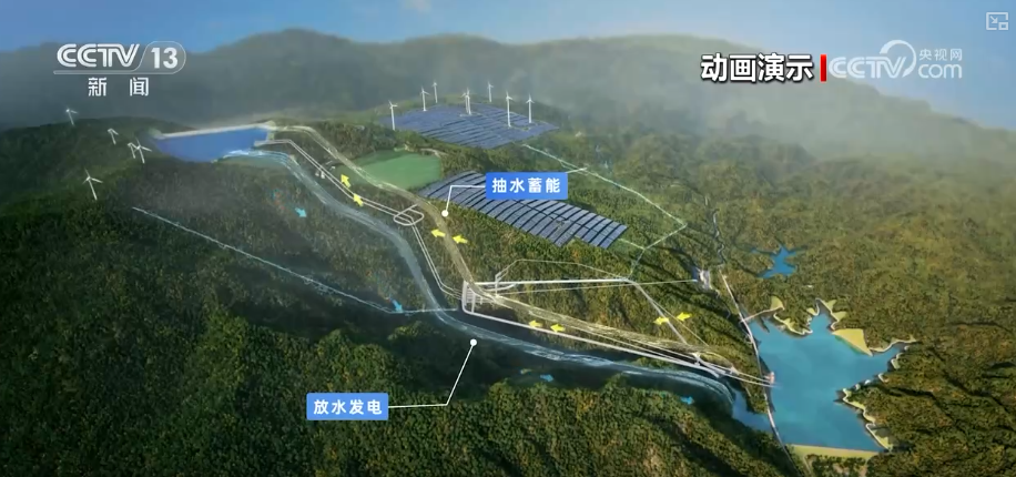 当风光大发、电力富余时,例如中午阳光强烈,光伏电站满负荷发电,电网可能一时用不完这么多电。这时,抽水蓄能电站立即启动,利用这些富余的电能将水从下水库抽到上水库储存起来,有效避免了能源浪费。