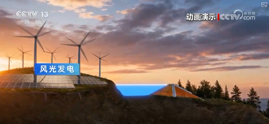 当风光发电减弱时,例如傍晚光伏停止发电,或者风小了。这时,电站切换至发电模式,放上水库的水利用水流落差驱动机组发电,将储存的水的势能快速转化为电能,填补供电缺口,保障民生及工业用电稳定。