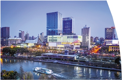 在杭州大厦C座与好运湾交会处,一个融合水岸风光、开放式街区与品质生活方式品牌的“夜武林”特色片区已然成型,被年轻人群誉为杭州的“巴黎左岸”。FINA花园西餐厅的露天花园里,夜晚常坐满带着爱宠聚餐、拍照的时尚青年。“点一杯特色调饮,伴着运河夜景与朋友闲谈,是许多人选择这里的理由。”负责人Amy介绍道。