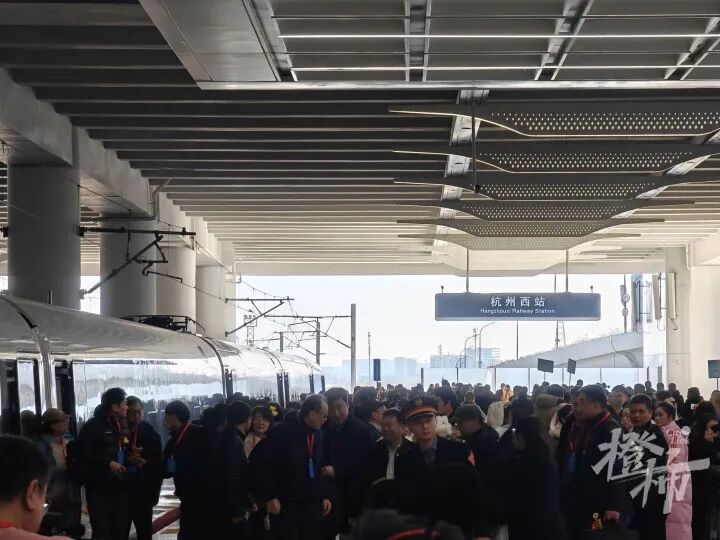 10点26分,列车停靠在杭州西站,乘客们陆续下车,全程用时1小时10分钟。