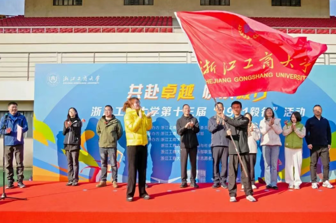 12月28日上午9点,浙江工商大学迎来第十三届“1911”毅行活动。3200余名师生、校友、留学生组成的近280支团队活力开走。世界游泳冠军傅园慧惊喜到场,向毅行者代表、该校2025年度“阳光校园跑”冠军孙梓豪同学授校旗,并且与大家共赴19.11公里挑战。