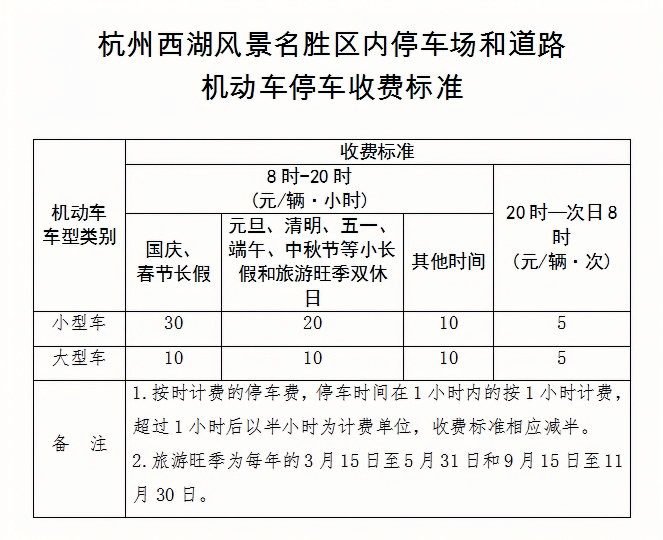 西湖景区停车调价通知