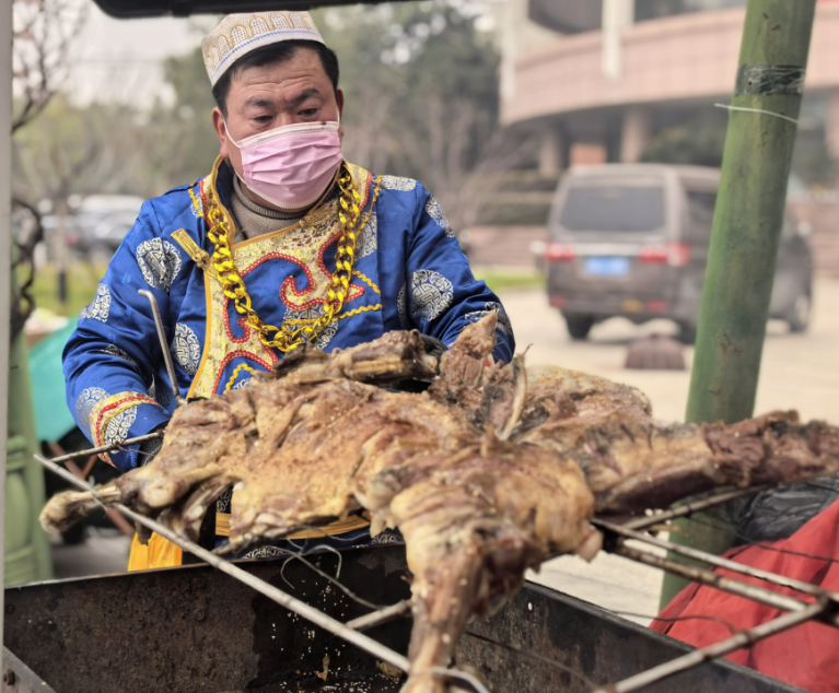 走进市集,浓郁年味扑面而来。奶皮子糖葫芦、潮汕牛肉丸、长沙臭豆腐、烤全羊等20余种现制各地美食和14个特色档口,吸引不少师生驻足品尝,师生们边逛边吃,一站式打卡各地美味。“这是我们家乡的泡虾,味道特别赞!你们也尝尝。”来自台州的学生王意霞向朋友推荐起了家乡美食。