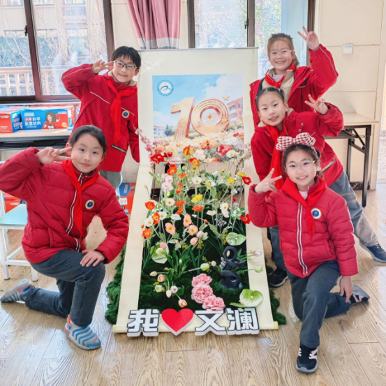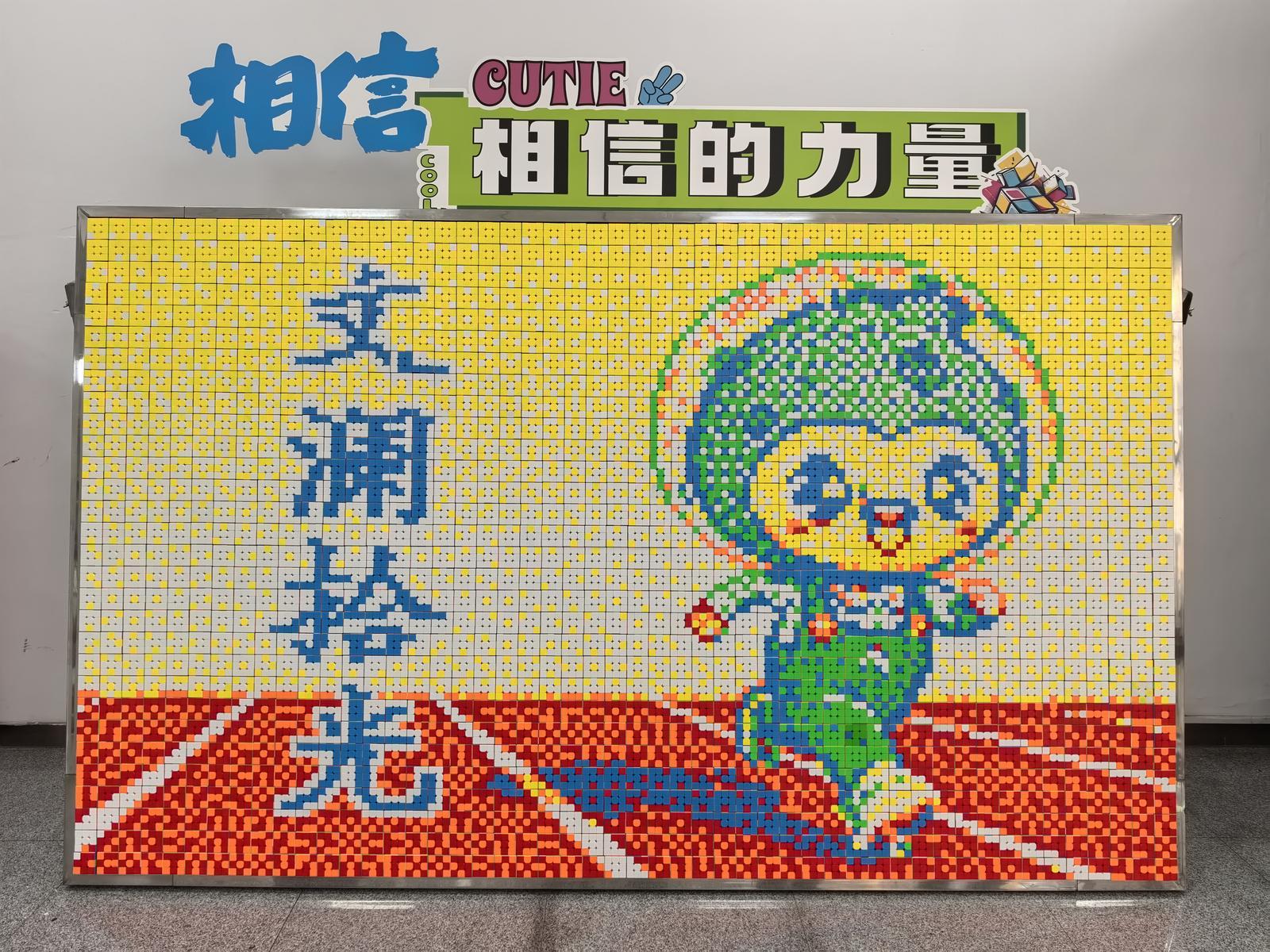 美术系列活动同样精彩。“童艺拾光”展览展出油画、版画、手作诗集等社团作品;“蓝泡泡艺术创想周”中,孩子们以编织、绘画等方式表达对母校的祝福。近千师生还共同用1500枚魔方拼出“澜宝”形象与“文澜拾光”字样,在跨学科实践中诠释“相信每一个孩子”的信念。