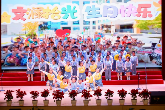 校庆典礼在欢腾的《快乐向未来》中开启,师生通过朗诵、戏曲、民乐、合唱等多种形式,展现文化自信与艺术素养。全校齐唱校歌《文澜有光》将气氛推向高潮,“有一种光芒,叫做希望”的歌声,呼应着文澜教育温暖而充满活力的底色。