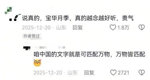 网友对“宝华月季”的“物华天宝”解读