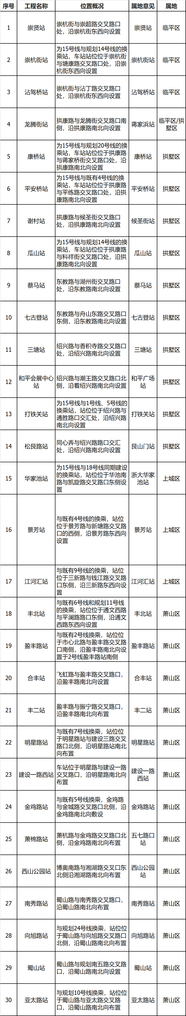 杭州地铁15号线一期拟定站名公示!
