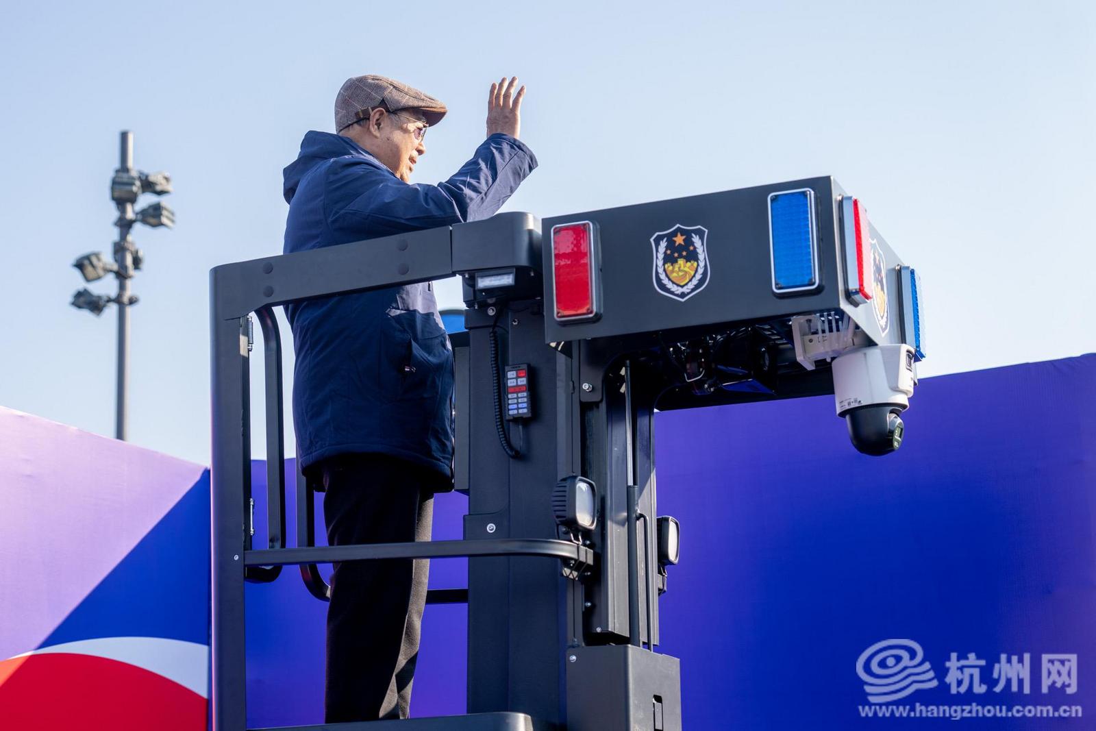 活动现场,“杭产警用”科技新装备集中震撼亮相,浙里快处无人机、AI眼镜、交警机器人等装备在实战场景中的精彩表现,让现场群众提前感受智慧警务的强劲脉动。