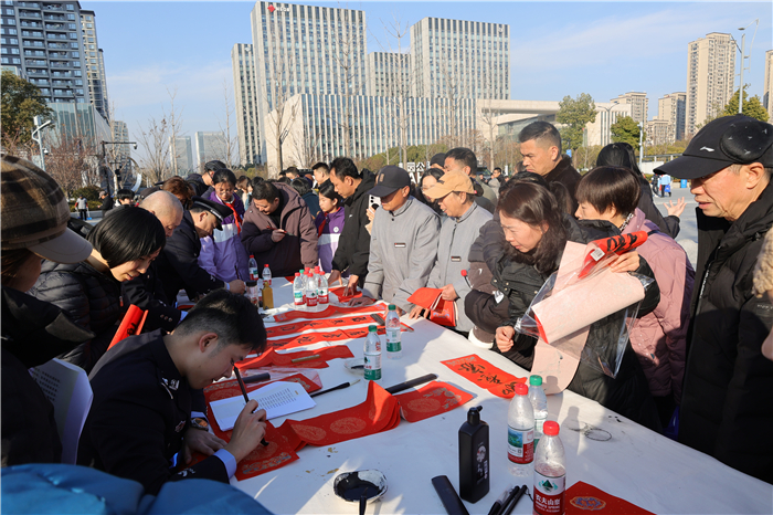 现场,还有民警挥毫泼墨书写福字和对联,将满满的新春祝福与平安期许融入笔墨,一旁的工作人员还为大家递上热气腾腾的豆浆。拿到福字和热豆浆的李奶奶感动地说:“不仅有福气拿,还有热乎豆浆喝,真是太贴心了!”大家脸上都洋溢着笑容,让寒冬充满暖意。
