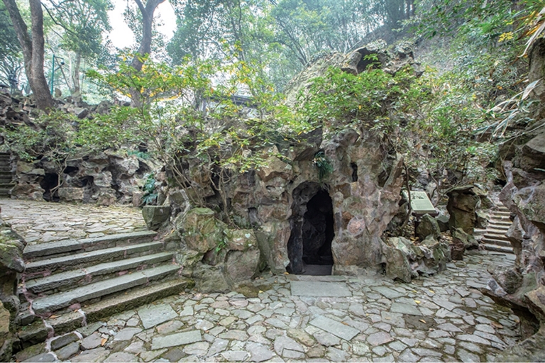 沿着假山群,经过“慧开禅师”塑像,再走过圆缘台,登上后山,会看到一个“卧云洞”。近代学者钟毓龙在《说杭州》中写道:“洞之上又有一洞,曰卧云,或谓此乃真正之黄龙洞也。”根据这个说法,卧云洞也有可能是黄龙洞本洞。