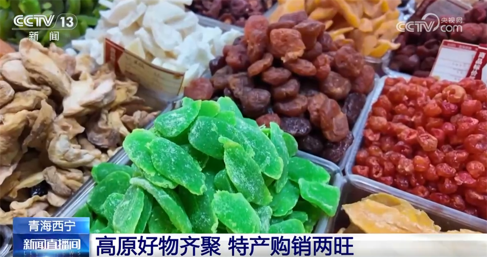 走进青海西宁市城东区的年货大集,各色货物琳琅满目,枸杞、牦牛肉干、烤奶皮等特产应有尽有,干果蜜饯、糖果礼盒等传统货物也没有缺席,吸引不少消费者驻足选购。
