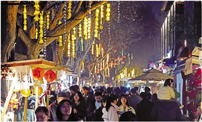 “兜”有好运、马上“兜”有、萤火森林……1月17日晚,大运河畔的大兜路历史文化街区沿线,11组“好运新年”灯光美陈装置和千盏灯笼在狮跃人欢的喜庆氛围中陆续点亮,拉开了大兜路光影耀新年的序幕,迎候市民游客走大运、拍光影、沾福气、逛市集、闹新春。