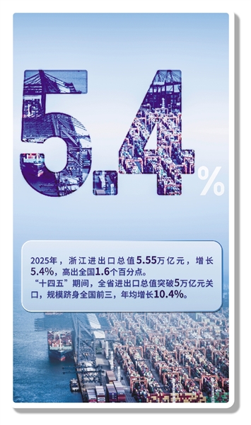 2025年浙江进出口增长5.4% 出口规模首破4万亿元