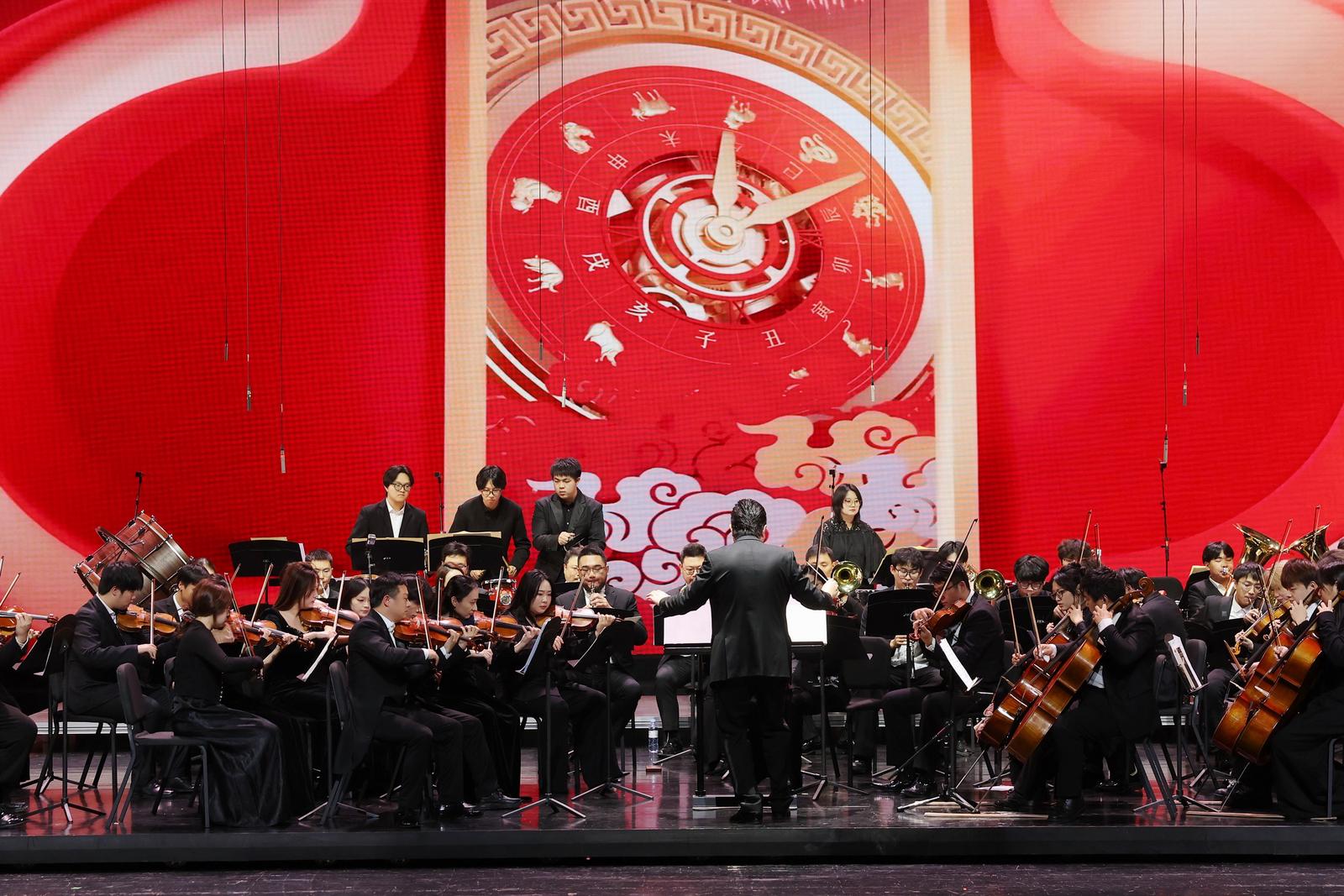 晚会以“溯春”与“入海”两大篇章为主线,巧妙构建了从回望文化根脉到展望时代奋进的叙事闭环。在《潮起钱塘》的开场舞中,活力瞬间迸发。“溯春”篇章里,管弦乐《春节序曲》、戏曲《梨园启春声》等节目,带领观众追溯传统文脉;“入海”篇章则随着《红旗颂》的激昂旋律推向高潮,《我的中国红》《在希望的田野上》等表演,尽显昂扬向上的精神风貌。