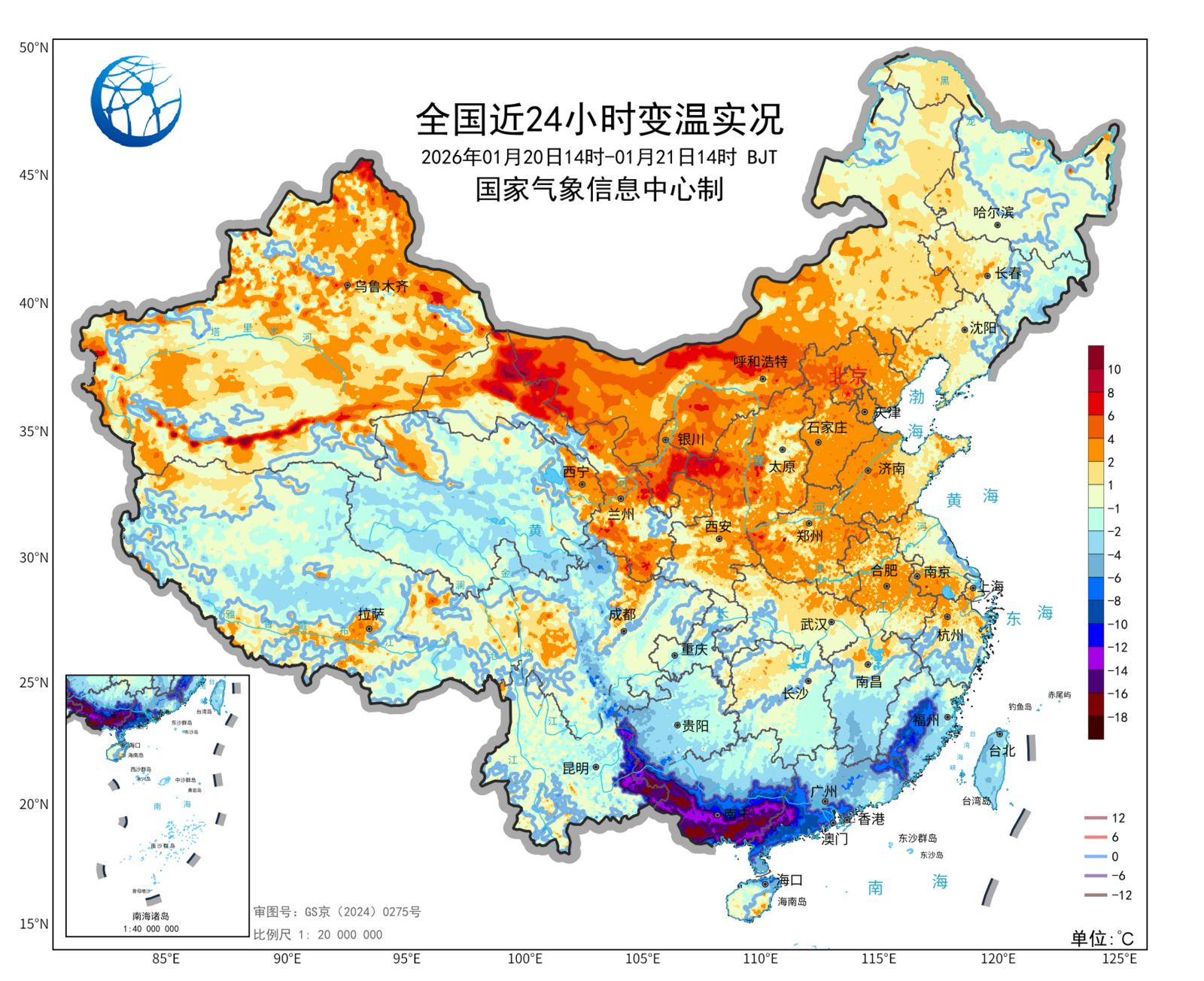 21日,长江以北地区的寒意稍有减弱,多地气温有所回升。而长江中下游地区寒意明显,广西南部和云南东南部在寒潮的影响下也出现剧烈降温,部分地区降温达15℃以上。