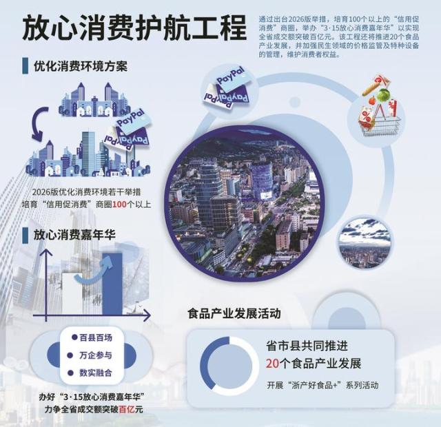 为激发消费活力,全省大力推进放心消费护航工程。今年将举办百县百场、万企参与、数实融合的“3·15放心消费嘉年华”,开展 “浙产好食品+”系列活动,培育上百个 “信用促消费”商圈 ,新发展一批无理由退换货实体店,政企社联合打造预付式消费信用场景,推广消费纠纷“一键和解”“在线化解”模式,以信用建设优化消费体验,让消费者敢消费、愿消费。