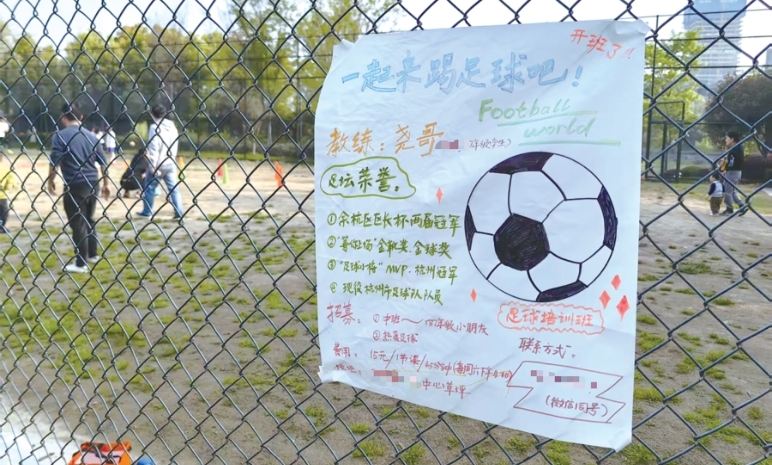 聊天尾声,程女士把手机拿到我面前,一位小区家长正在和程女士约尧哥周末的足球课,“喏,有小区邻居看到我的帖子找到我,尧哥又要忙起来了!”