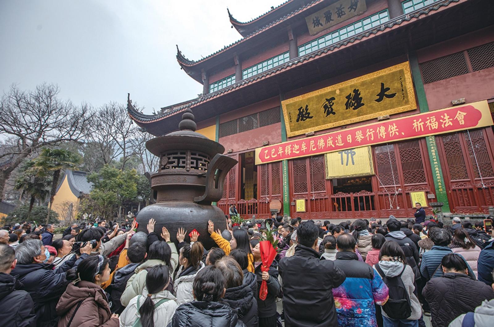 昨天上午,游客在灵隐寺参观祈福。记者 陈中秋 摄