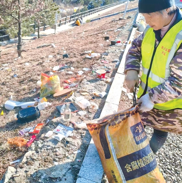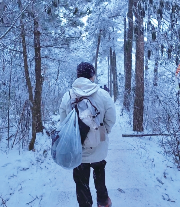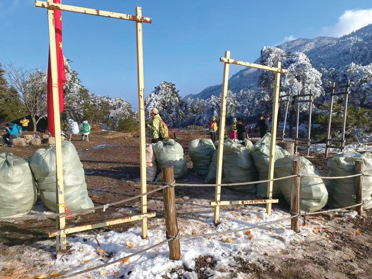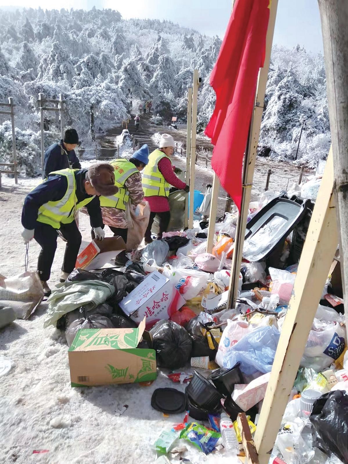 “现在我们每天上山捡垃圾的都是10人左右,年纪都在50岁到60岁之间,考虑到下雪,清洁员也要筛选,要保证他们的登山安全。”