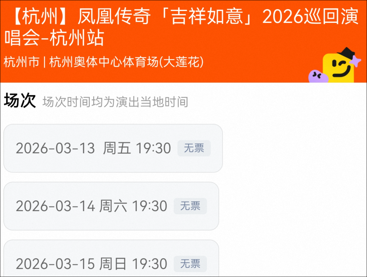 1月30日,凤凰传奇工作室发文:凤凰传奇「吉祥如意」2026巡回演唱会首站杭州温暖启动3月13日-15日杭州奥体中心体育场2月4日12:00正式开启预售。