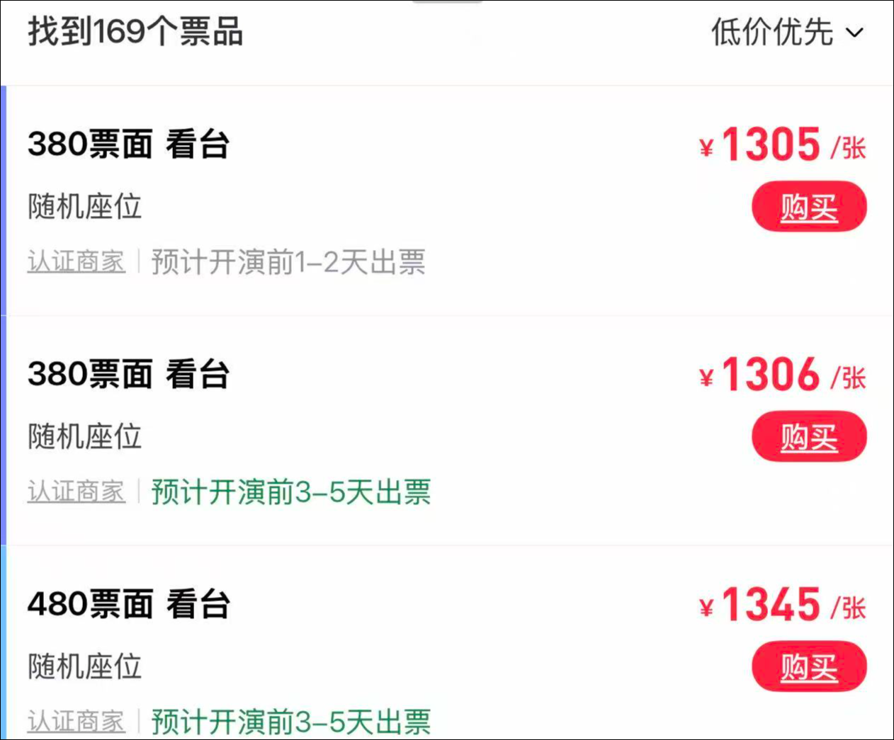 原价380元的票,二手购票平台已溢价至1305元。