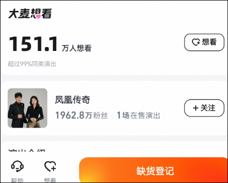 目前大麦官网显示有151万人想看,已是缺货状态。